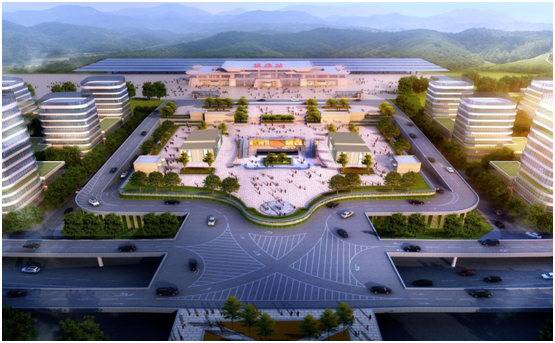 鎮(zhèn)雄縣以勒高鐵站站前廣場效果圖