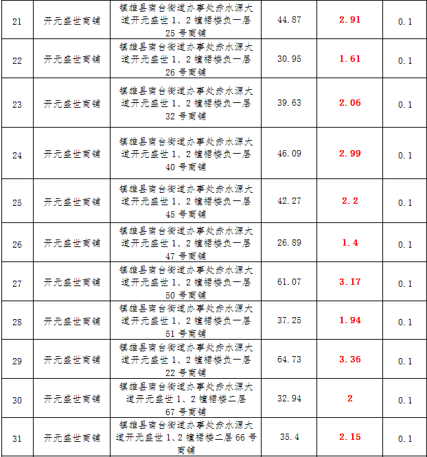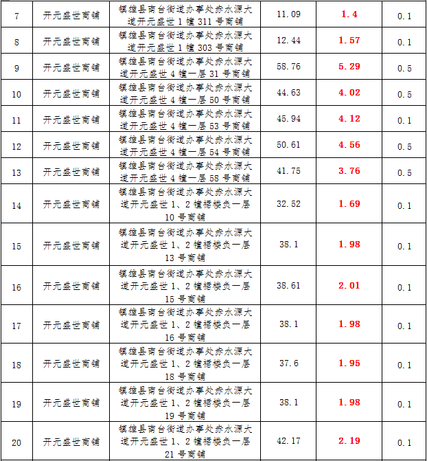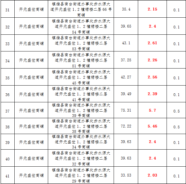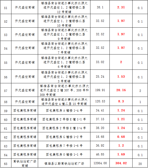 (一)拍租鎮(zhèn)雄發(fā)展集團(tuán)有限公司國(guó)有門面3年期使用權(quán),詳見(jiàn)下表: