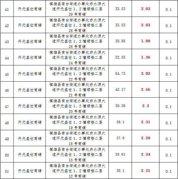 (二)拍租鎮(zhèn)雄縣城鄉(xiāng)建設(shè)投資有限公司國(guó)有門面3年期使用權(quán),詳見(jiàn)下表: